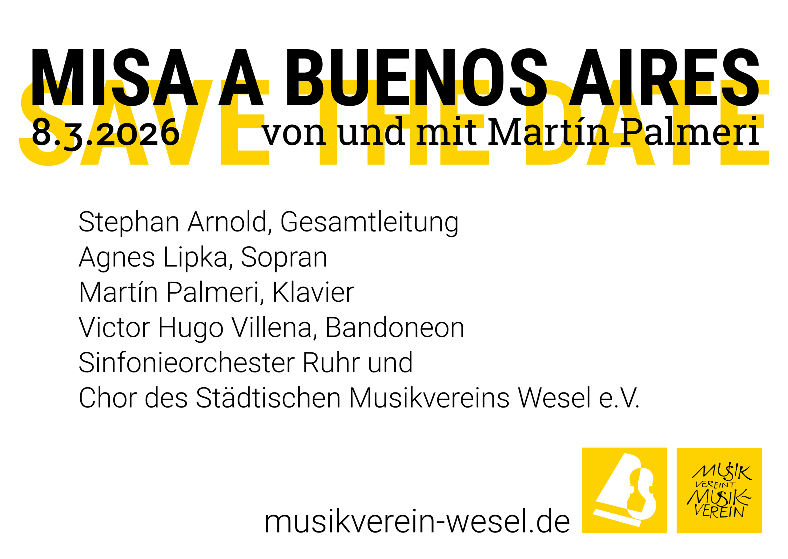 Mit unserem nächsten Programm tauchen wir ein in die lebhafte und leidenschaftliche Musikwelt Südamerikas und bringen die mitreißende „Misa a Buenos Aires“ des argentinischen Komponisten Martín Palmeri auf die Bühne. Ergänzt wird das Programm durch weitere spannende Chorliteratur. Ein farbiges, kontrastreiches Programm, das alle Sinne anspricht.