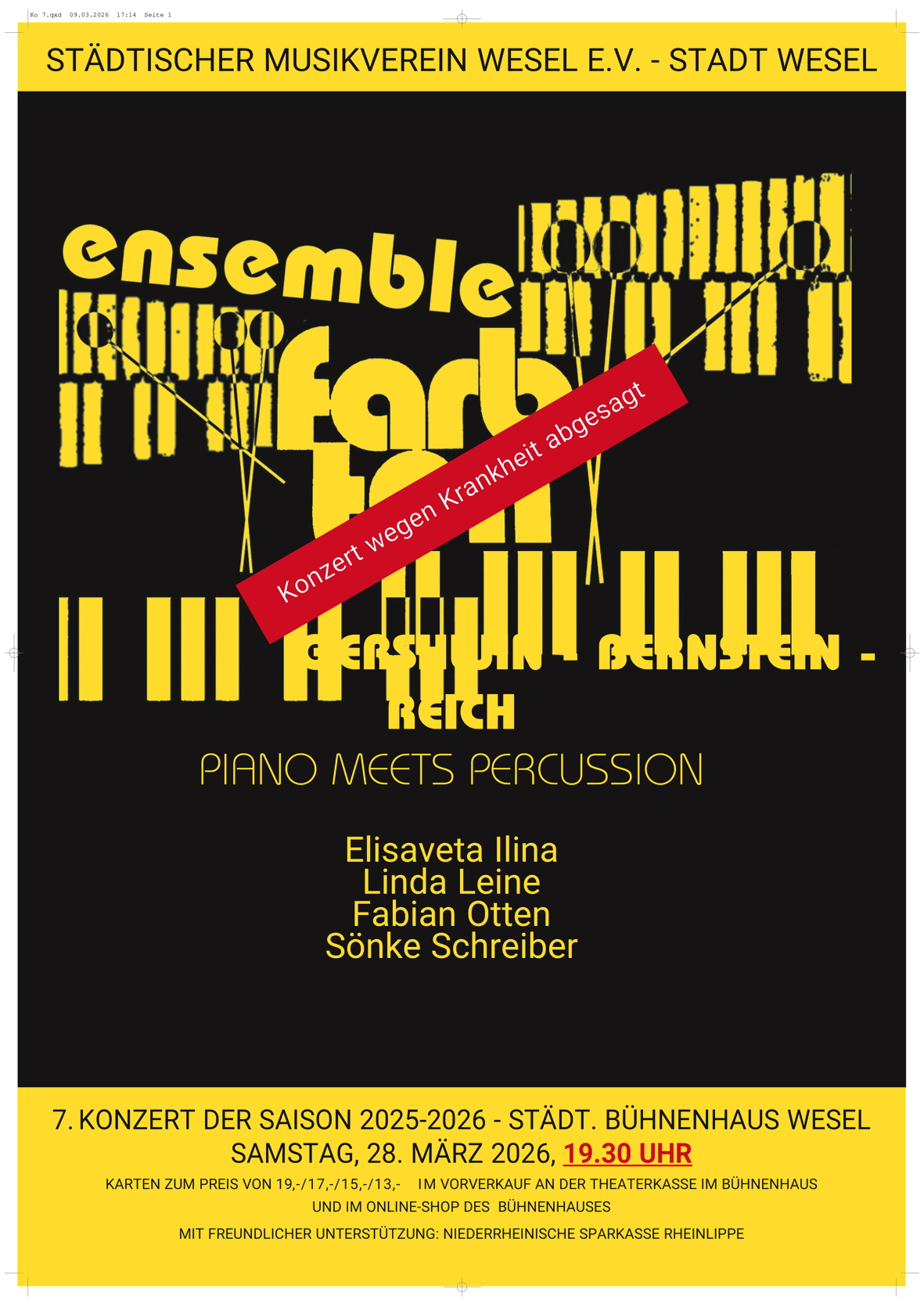 Leider, leider müssen wir die beiden Konzerte mit dem Duo Farbton am Nachmittag und dem erweiterten Duo Farbton am Abend absagen!!! Der Grund ist die Erkrankung von Sönke Schreiber. Die Konzerte werden aber schnellstmöglich in 2027 nachgeholt.